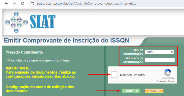 Preencha os campos solicitados, como CNPJ e número da inscrição municipal (caso solicitado). - Solicite a emissão do documento