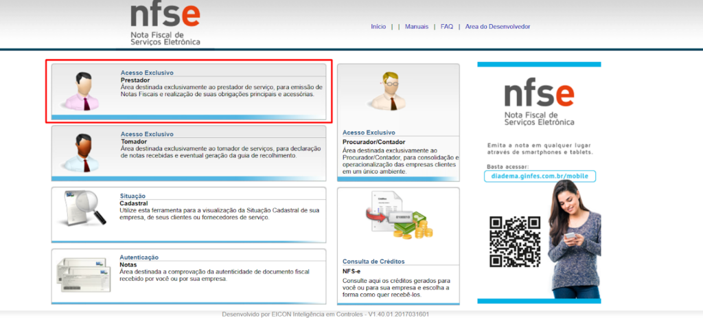 Essa opção é destinada às empresas e profissionais que prestam serviços no município.
