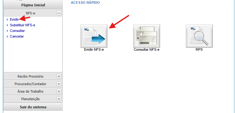 Nas imagens deste guia, você verá exatamente a tela inicial do sistema e as opções corretas para iniciar a emissão.
