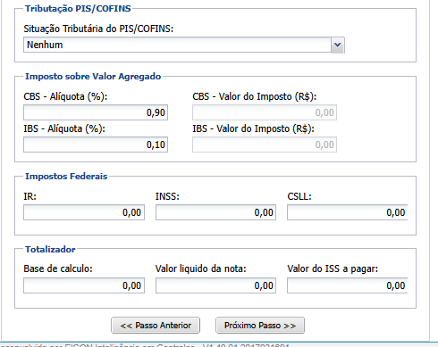 - Os campos de IBS e CBS aparecem apenas de forma informativa neste momento e não geram recolhimento imediato.