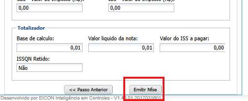 Estando tudo correto, basta clicar em “Emitir NFS-e” para finalizar a emissão.