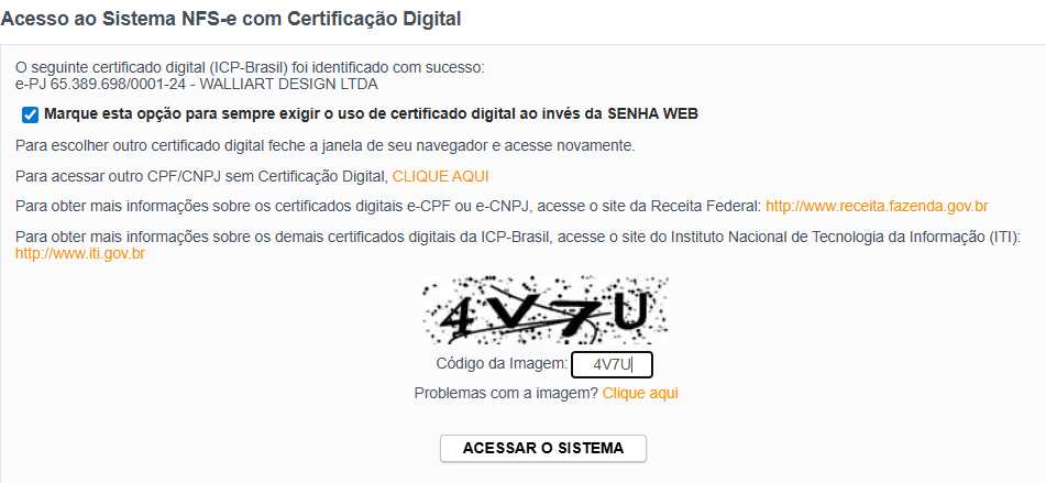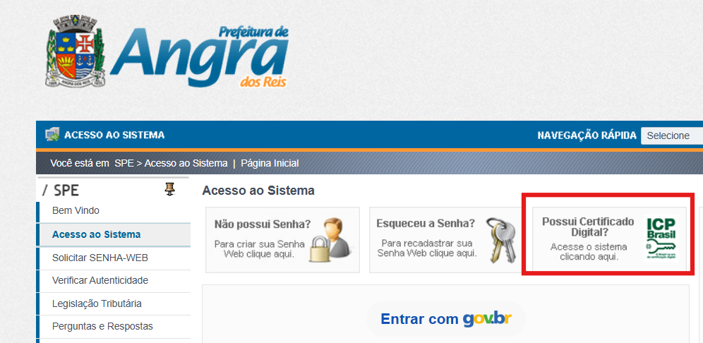 Com o certificado instalado, é possível acessar o sistema da prefeitura.