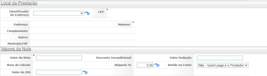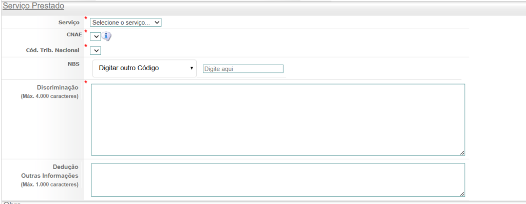 Agora, informe corretamente os dados do serviço prestado.