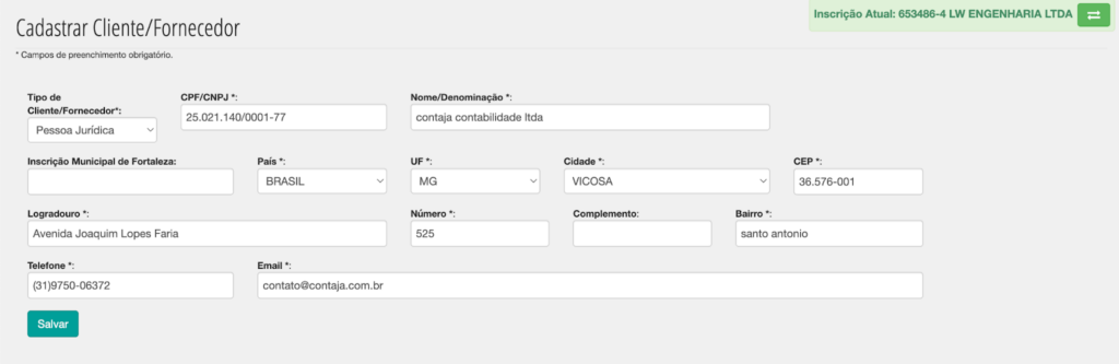 - Caso o seu cliente não seja cadastrado, é necessário cadastrá-lo: