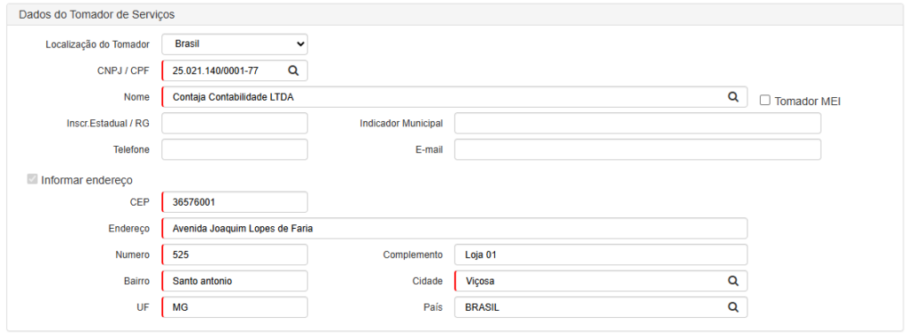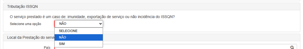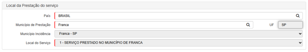 Esse campo informa onde está domiciliado o tomador do serviço.