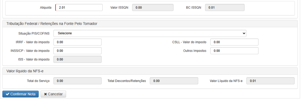 - Caso esteja tudo correto e os campos obrigatórios preenchidos, clique em Confirmar Nota
