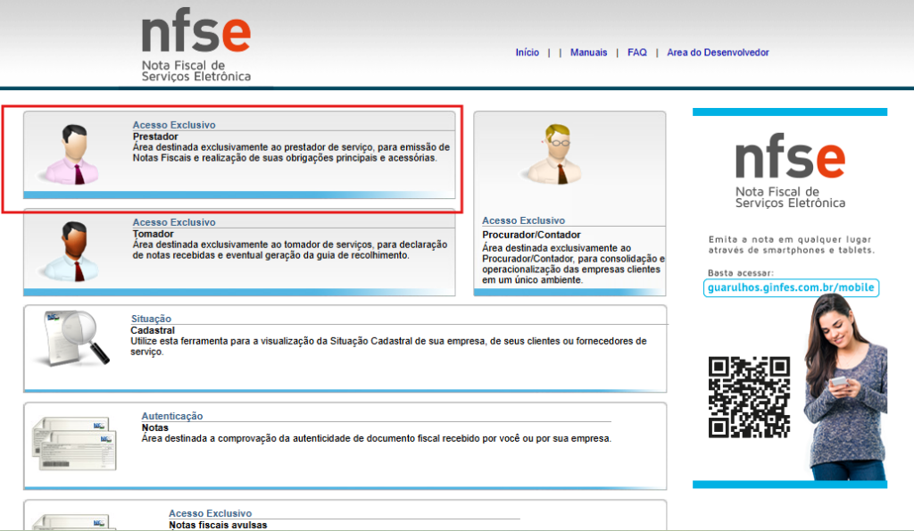 Entre no portal oficial da NFS-e de Guarulhos:
