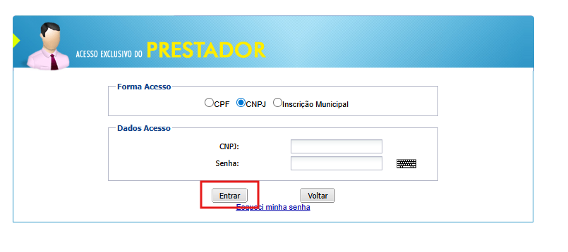 - Clique em Entrar
