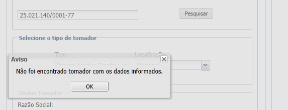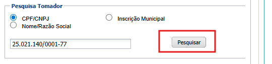 Pesquise o tomador do serviço