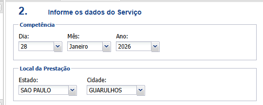 - Informe a competência da nota (data da prestação do serviço)