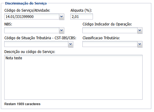 - Selecione o código do serviço prestado