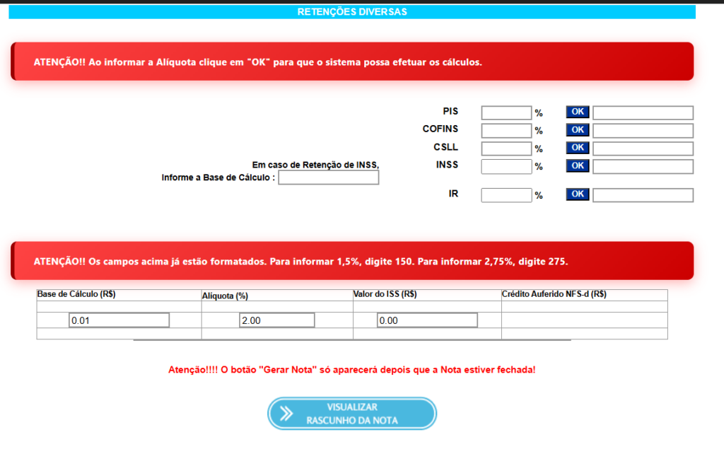 - Clique em Visualizar Rascunho da Nota para conferir os dados.