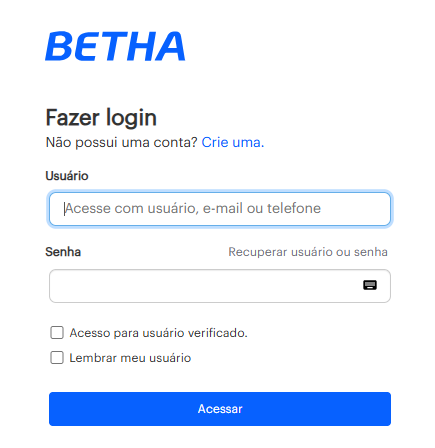 Ao acessar o link, o sistema exibirá a tela inicial da plataforma Betha.