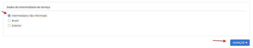 - Se não houver intermediário, selecione “Intermediário não informado”