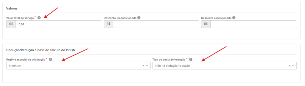 - Informe o valor total do serviço