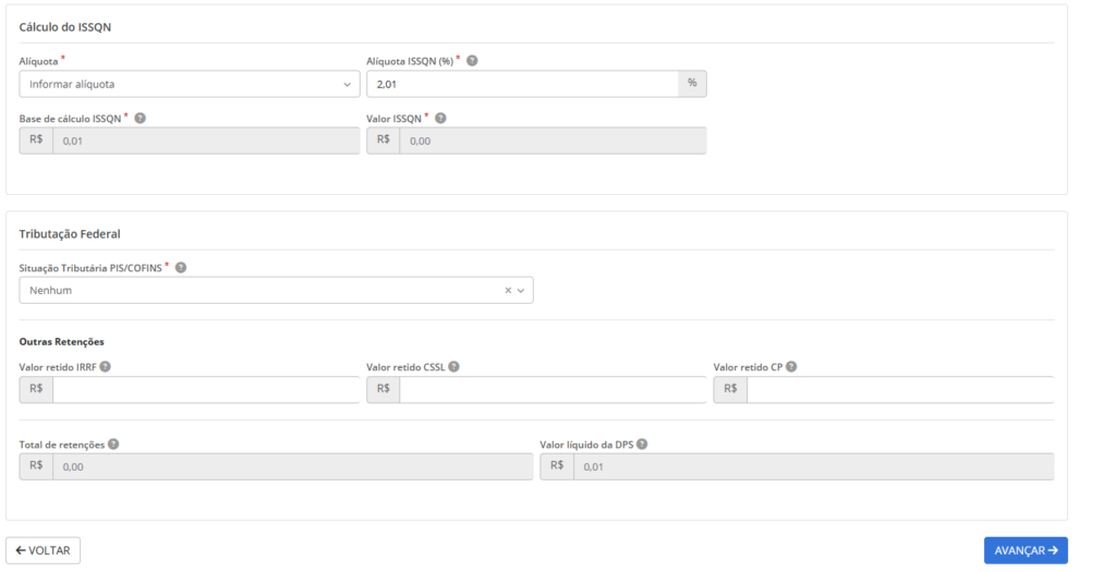 Cálculo do ISSQN