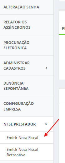 No menu lateral esquerdo, procure pela aba “NFSE Prestador”.