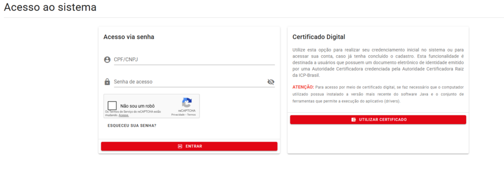 - Certificado Digital: Utilize seu E-CNPJ para um acesso mais rápido e seguro, sem a necessidade de digitar senhas manuais.
