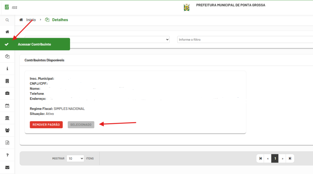 Com o contribuinte selecionado: