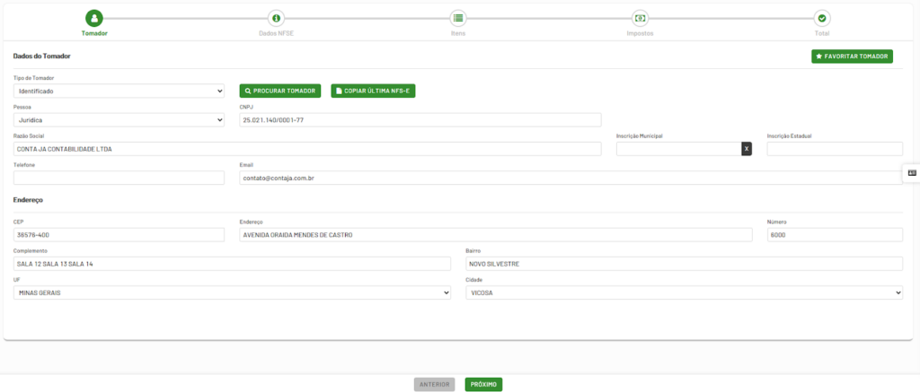 Preencha os dados do tomador