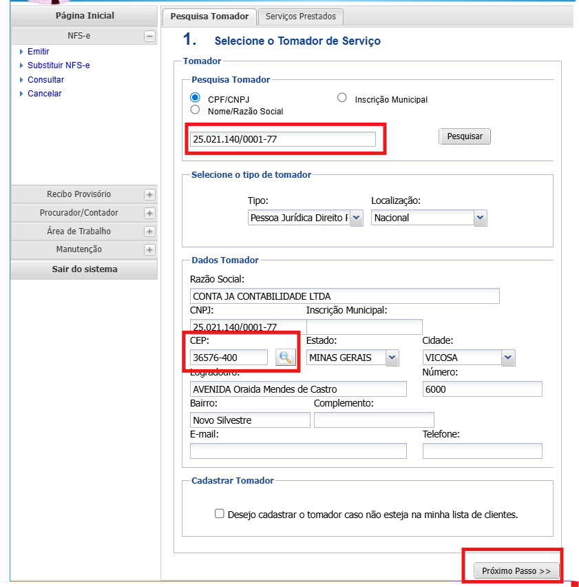 Após a validação automática dos dados, confira as informações e clique em Próximo passo.