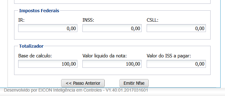Após conferir o totalizador, clique em Emitir NFS-e.