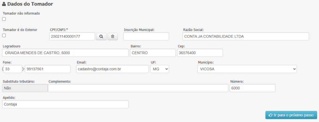 Após concluir o preenchimento, clique em Ir para o próximo passo.