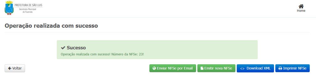 - Será possível imprimir a NFS-e, baixar o arquivo ou realizar outras ações disponíveis no sistema