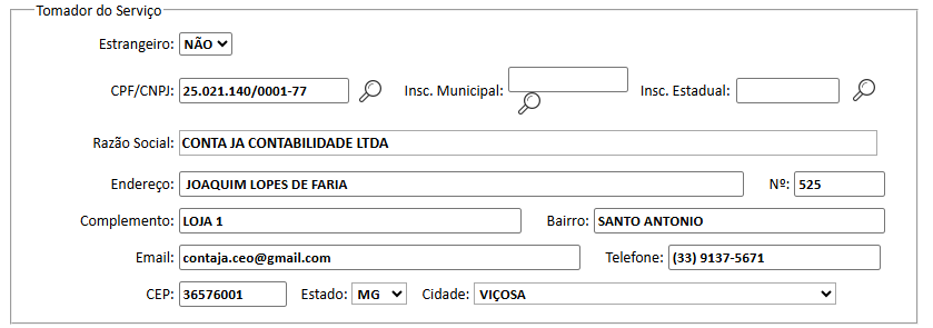 Preencha os dados do tomador do serviço
