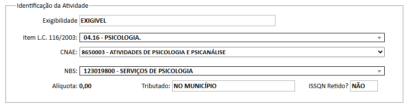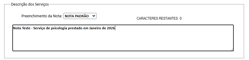 - Selecione o item correspondente ao serviço prestado