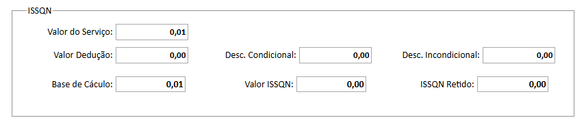 Informe os valores do ISSQN