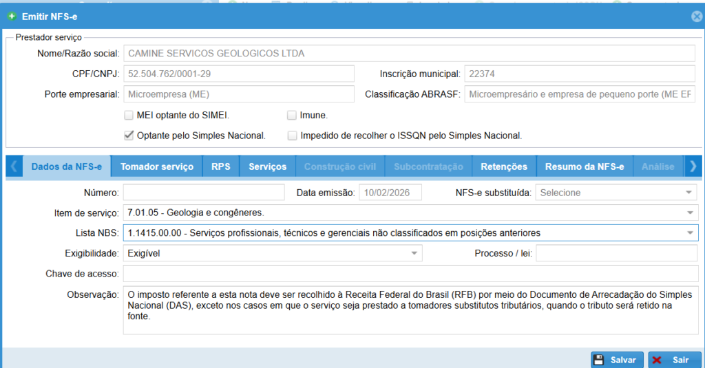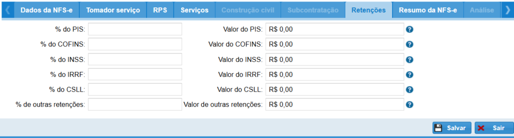 - Retenções zeradas (quando Simples Nacional)