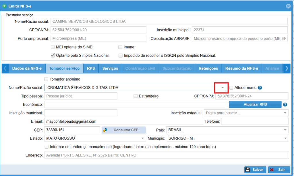 Informe os dados do tomador