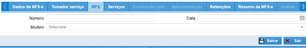 Deixe a guia RPS em branco