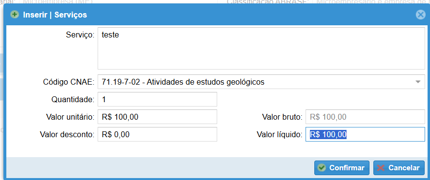 - Valor do serviço