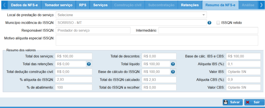 Na aba Resumo da NFS-e: