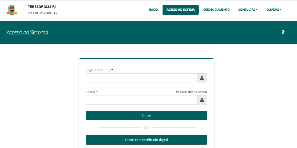 Para iniciar a emissão, acesse o sistema oficial de NFS-e de Teresópolis: