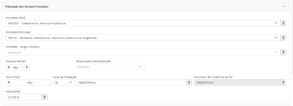 Alguns municípios exigem ou validam a Nomenclatura Brasileira de Serviços (NBS). Utilizar um código incorreto pode gerar inconsistências futuras.